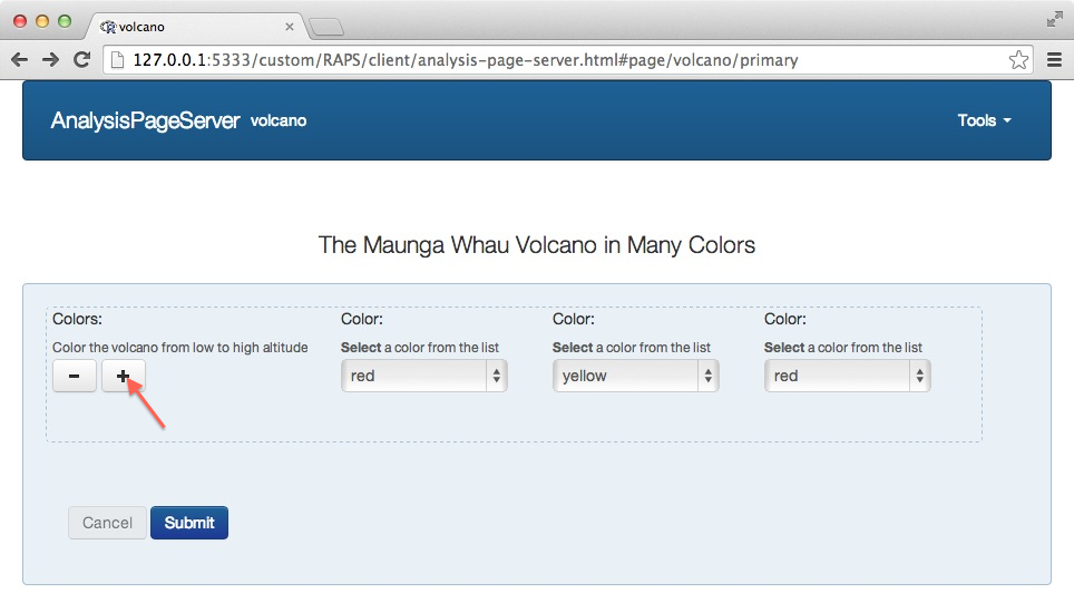 volcano page. Clicking on Submit takes us to the analysis result: