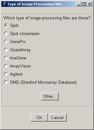 Now inform limmaGUI that the image-processing files listed in the RNA Targets file are Spot files.