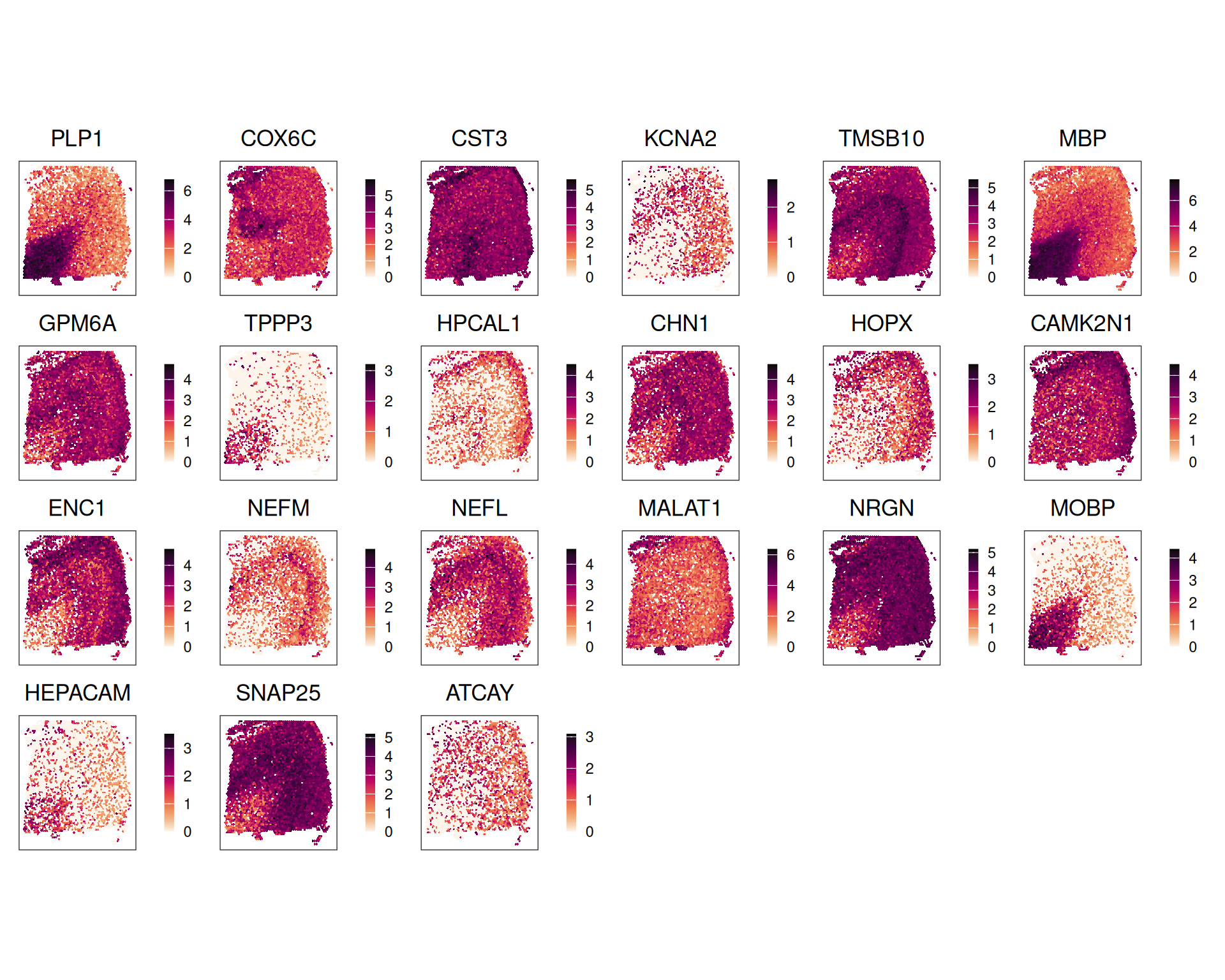 # gene-wise spatial plots