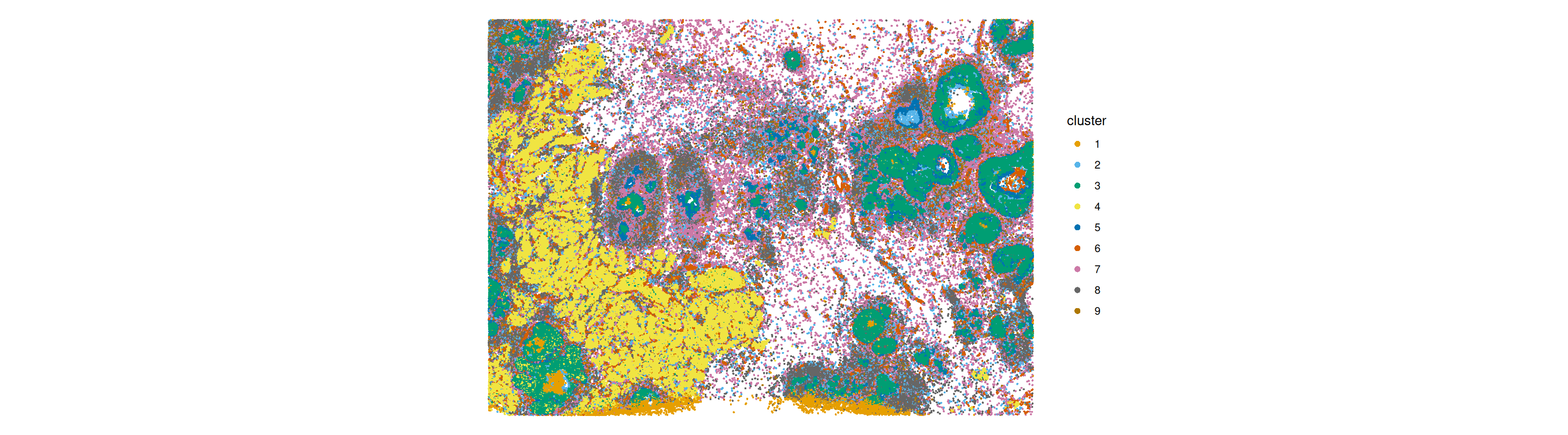 In the plot below, the centroids of the cells are attributed with a discrete cell type mark.