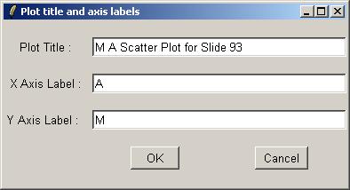 Leave the expression at its default value (Mraw), which will plot log red/green ratios for slide 81 using raw (unnormalized data). Advanced users will know from the discussion above that more complex expressions can be used here, possibly depending on M and A values normalized using different methods.