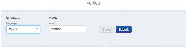 The form is initialized with the last language (Wolof) and word ("Merhbe"). This is the normal behavior for regular persistent parameters. Now, to demonstrate the conditional persistence, let's switch to English: