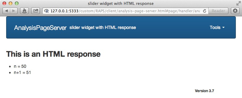 In order to do this we'll use the new.analysis.page constructor instead of build.service, and instead of calling the analysis URL directly we'll open the application through the analysis-page-server.html landing page: