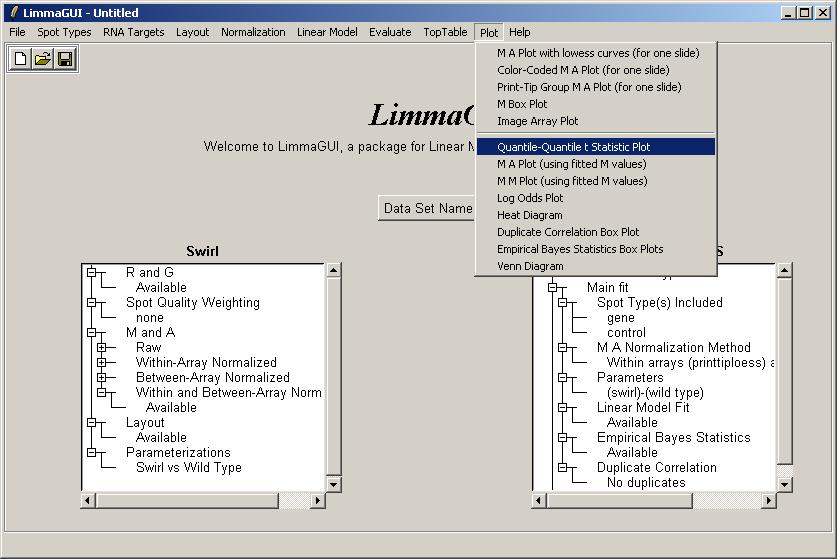 Now from the Plot menu, click on "Quantile-Quantile t Statistic Plot".