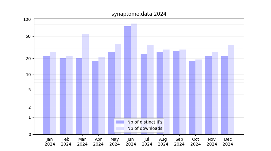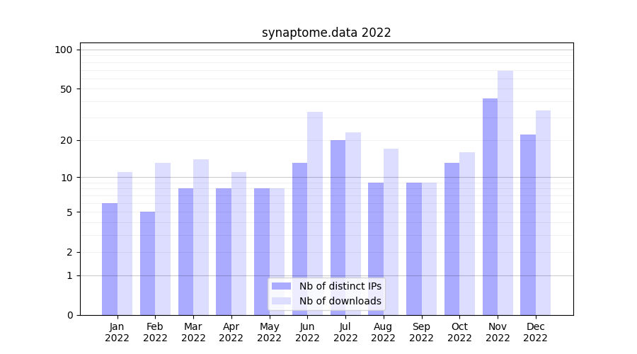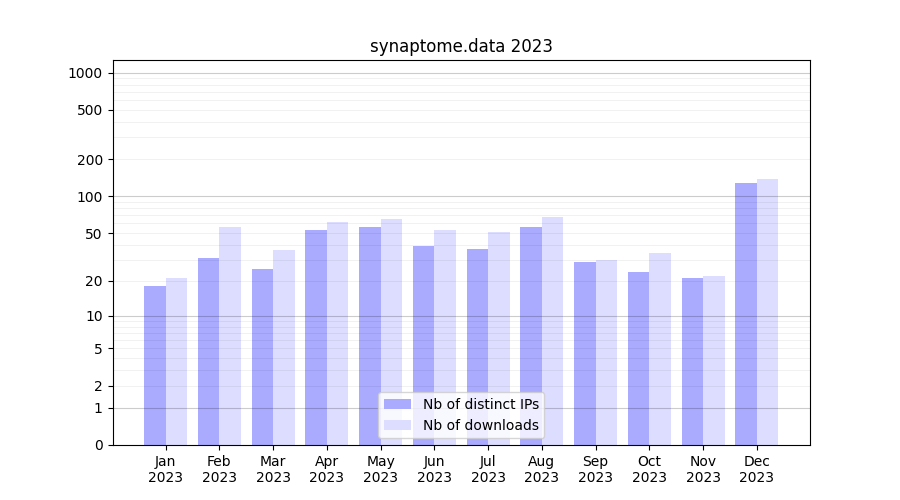 | Month | Nb of distinct IPs | Nb of downloads |