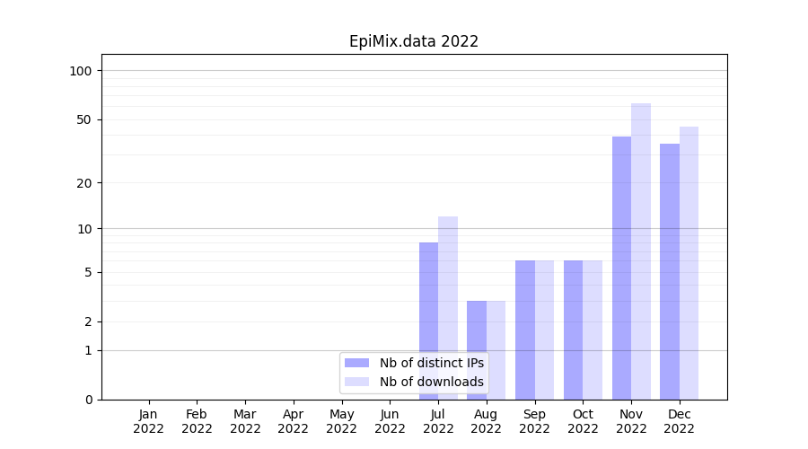 | Month | Nb of distinct IPs | Nb of downloads |
