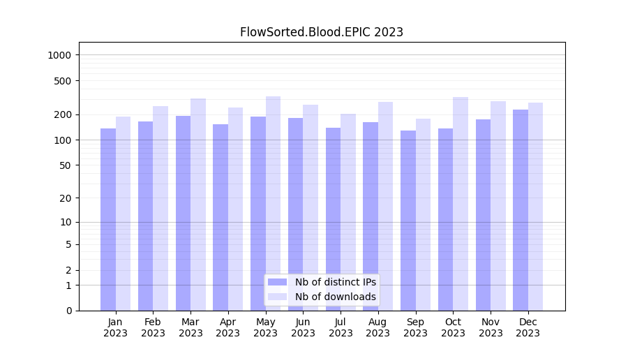 | Month | Nb of distinct IPs | Nb of downloads |