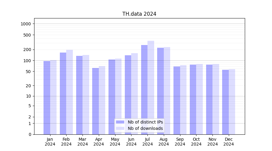 | Month | Nb of distinct IPs | Nb of downloads |