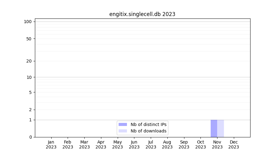 Number of downloads for experiment package engitix.singlecell.db, year by year, from 2025 back to 2014 (years with no downloads are omitted):
