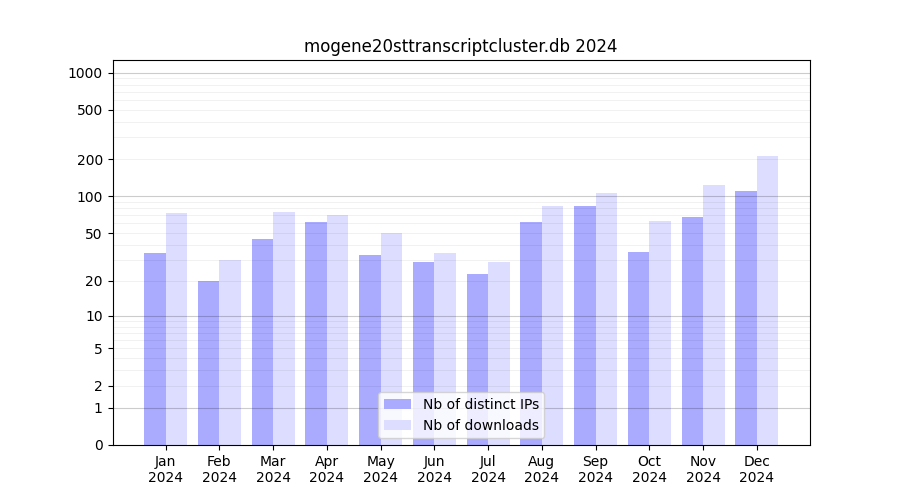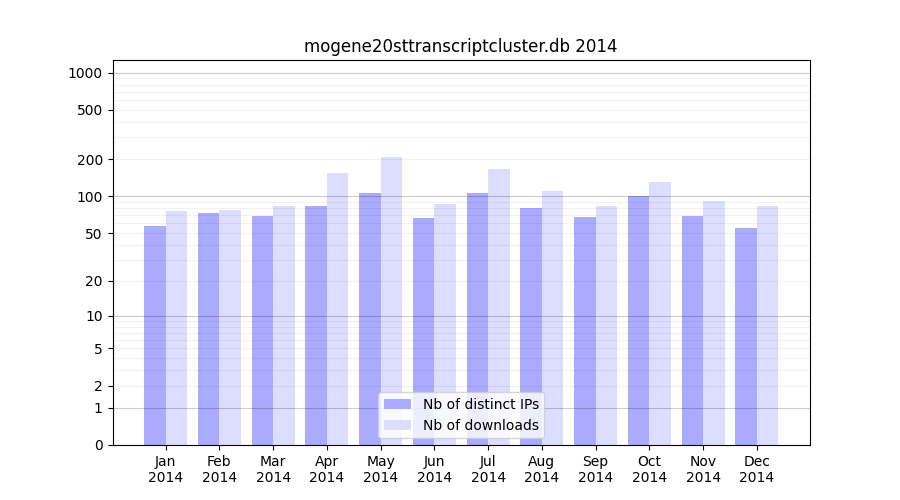 Download stats for annotation package mogene20sttranscriptcluster.db