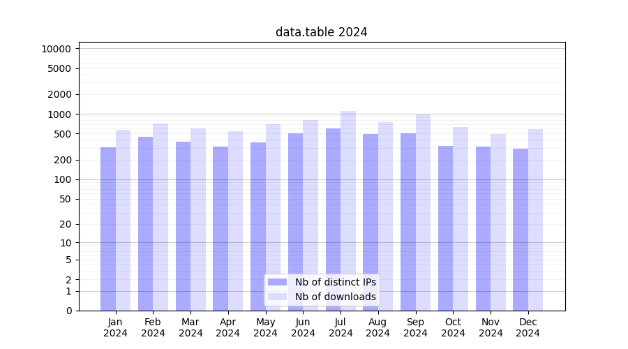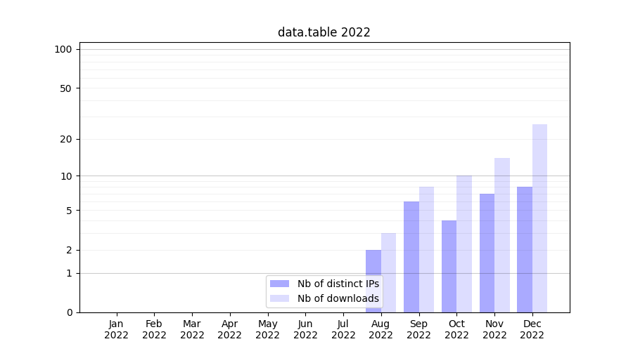 | Month | Nb of distinct IPs | Nb of downloads |
