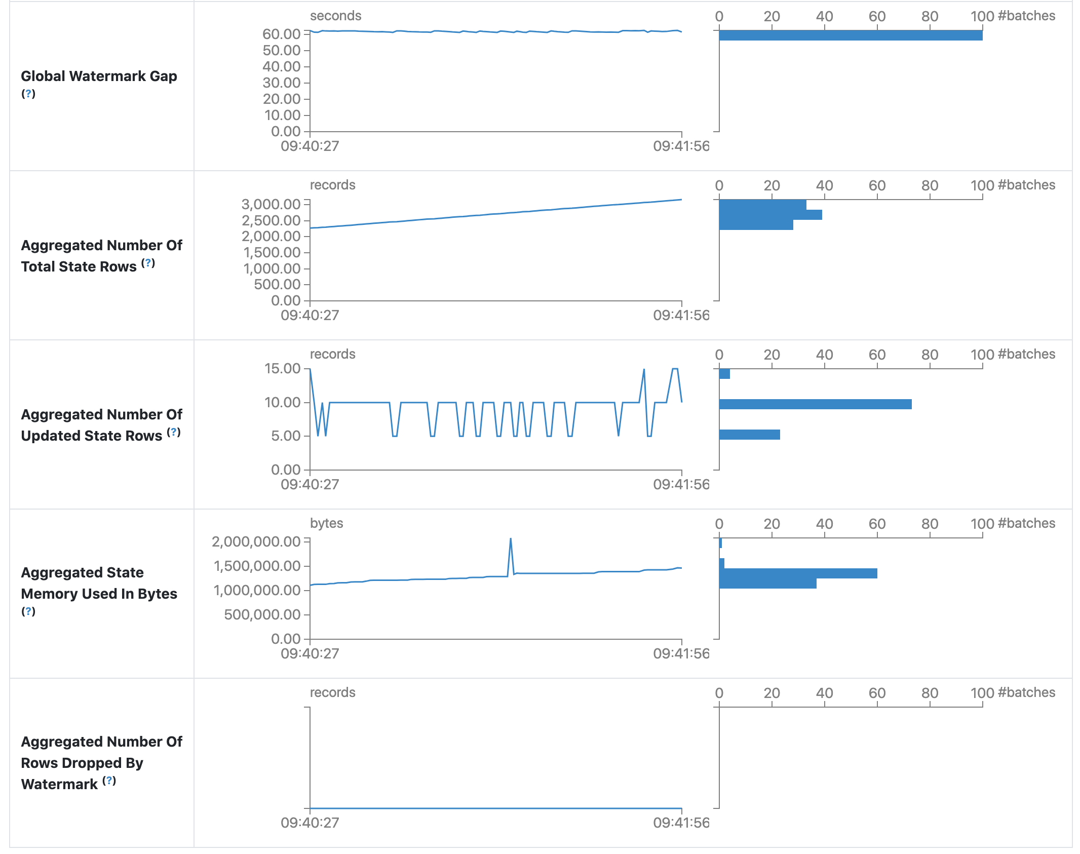 The statistics page displays some useful metrics for insight into the status of your streaming queries. Currently, it contains the following metrics.
